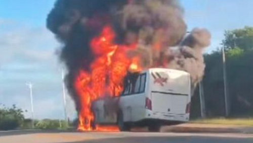 Um ônibus que transportava estudantes universitários pegou fogo na noite desta quinta-feira (9) enquanto trafegava...